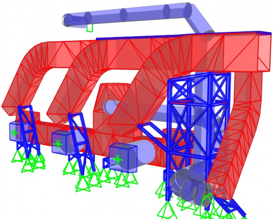 Structural analysis and design of major support structures: 4500t silo for alumina powder, 32m height support girder for conveyor, 4m diameter steel ducts, 36tones alumina duct, etc. Supervision of Foundation structural design & detailing done by company in Poland.